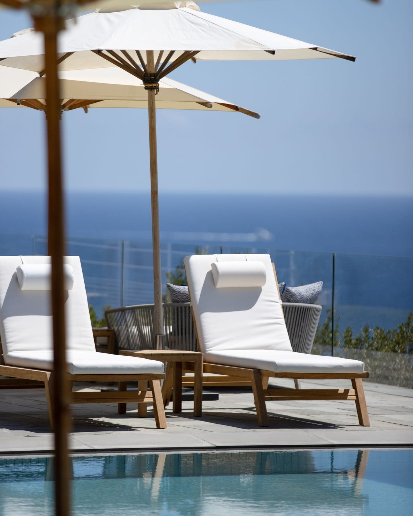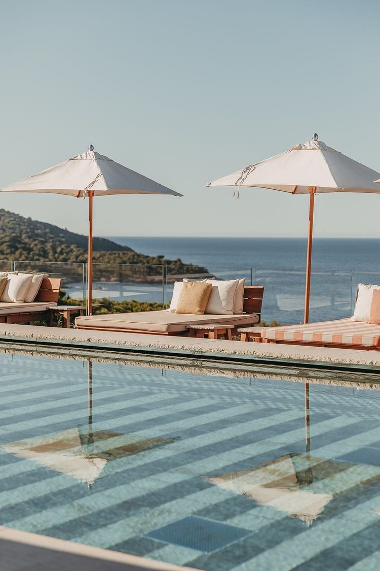 Upon arrival, the panoramic views of the sea and the surrounding landscape are immediately striking. The hotel's minimalist design by Jean-Michel Wilmotte fits seamlessly into its environment, offering a peaceful and understated elegance.