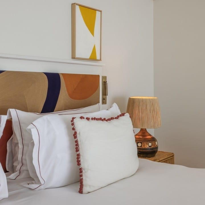 The hotel offers 52 rooms and 38 suites, styled with a 1960s and 70s flair, featuring gold-ringed lights, flower-power chairs, and wicker bedsteads. Spacious mosaic-tiled bathrooms come with generous Clarins products. Rooms range from tastefully decorated Classic rooms to vibrant Patio terrace rooms.